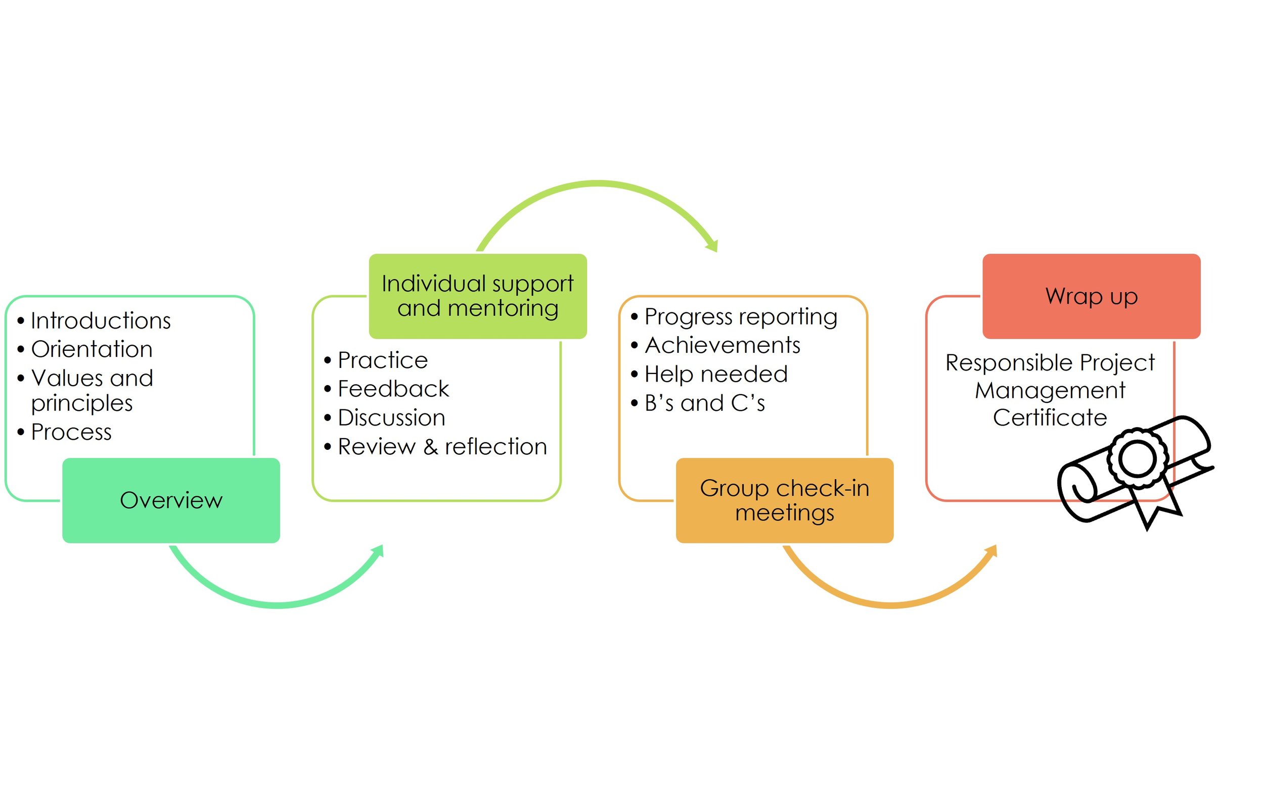 If your application is accepted, online individual mentoring will be offered. As you progress, you will submit examples of your work for feedback. There will also be monthly online group check-in meetings where you will be expected to report on your progress. Activities and mentoring run until the end of October 2026 when those completing the Programme will receive a Certificate in Responsible Project Management.